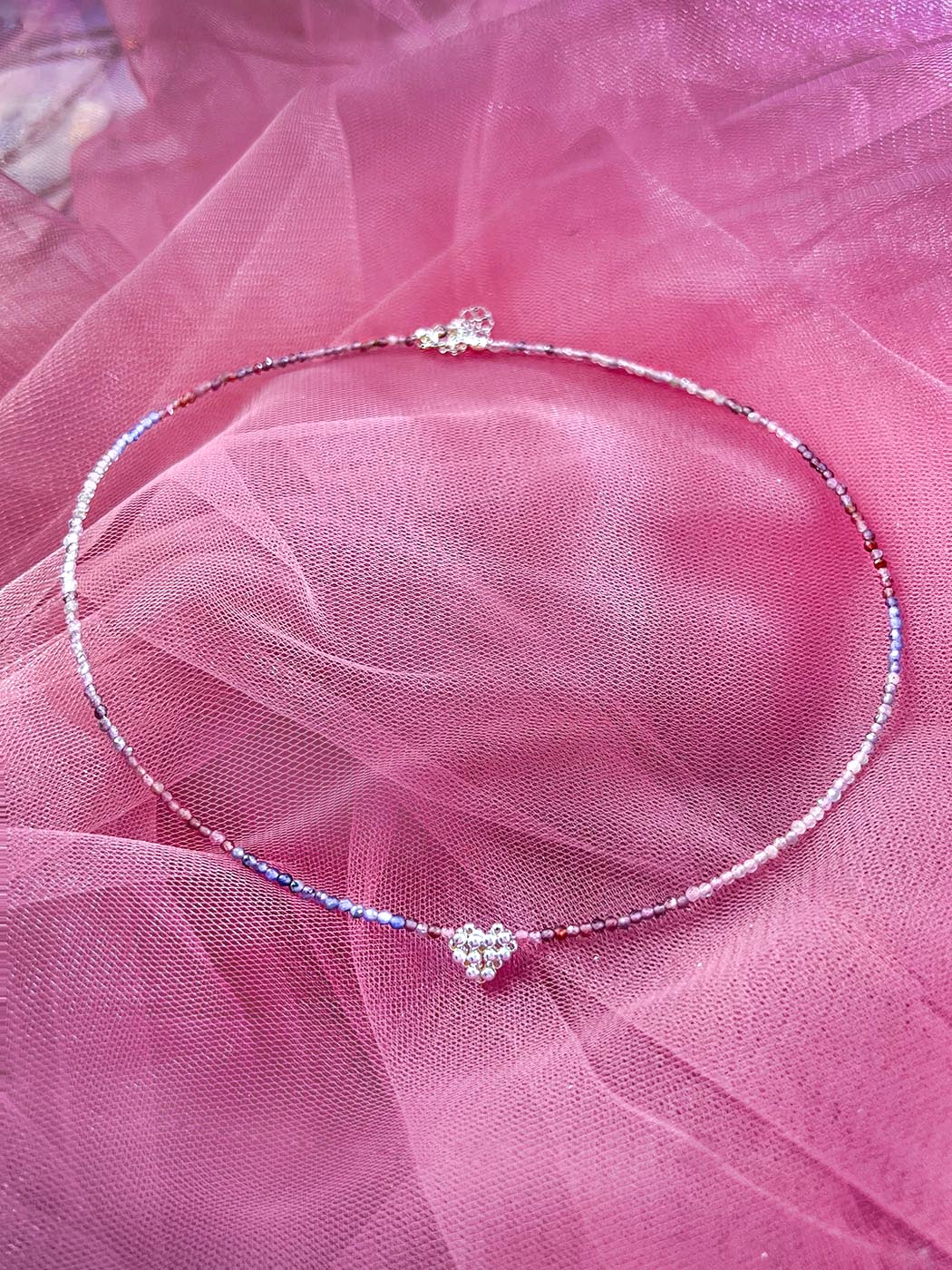 Wysoko wibracyjny naszyjnik z sercem , wykonany z kamieni szlachetnych/półszlachetnych*, linki jubilerskiej i srebra próby 925, opcjonalnie pozłacanego 24k złotem. ♡